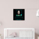 Eine silberne Buddha-Kopfstatue, die auf schwarzem Wasser mit schwimmenden türkisfarbenen Lotus-Blume und grünen Lilienpolstern reflektiert. Umgeben von einem blauen, türkisfarbenen Rahmen und einem schwarzen Hintergrund. Inspirationsziffer auf die Konzentration, unter dem Bild lautet "Wohnen Sie nicht in der Vergangenheit. Träumen Sie nicht von der Zukunft. Konzentrieren Sie den Geist auf den gegenwärtigen Moment."
