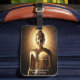Ein majestätischer, goldener Buddha steht friedlich und kokettiert eine weiße Lotus-Blume in einer Hand. Die Figur strahlt ein warmes Licht aus und ist Set gegen einen glühenden Halo, der Erleuchtung und spirituelle Gelassenheit in einer ruhigen Atmosphäre symbolisiert.