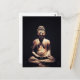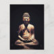 Das Bild zeigt eine Bronzestatue von Buddha, sitzend in einer meditativen Pose mit Händen, die in seinem Schoß ruhen. Die Statue ist mit aufwändigen Details beschnitten, darunter ein ruhiger Ausdruck auf dem Gesicht und fließende Roben. Der Buddha ist in einem dunklen, fast schwarzen Hintergrund dargestellt, der die goldbraune Farbe der Statue unterstreicht.