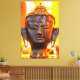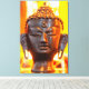 Das Bild zeigt ein nahes Aufsetzen eines dunkelbraunen Buddha-Statuenkopfes. Die Statue ist mit aufwändigen Details, darunter ein ruhiger Ausdruck mit geschlossenen Augen, eine prominente Nase und eine kleine kreisförmige Markierung auf der Stirn, gefertigt. Der Kopf ist mit einer strukturierten, leicht erhöhten Krone geschmückt, die seine traditionelle Ästhetik ergänzt.