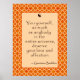 "Du selbst, so sehr wie jeder im gesamten Universum, verdient deine Liebe und Zuneigung." Inspirierend Zitat von Gautama Buddha, dem Buddha, auf dessen Lehren der Buddhismus gegründet wurde. Wir haben das Zitat auf einen leicht verwitterten Quarterfolienhintergrund in den Farben eines Sonnenaufgangs gesetzt und ein Yin-Yang-Symbol hinzugefügt, um uns daran zu erinnern, ausgeglichen zu sein. Erhältlich auf Plakaten in vielen Größen und Papiersorten (auch Leinwand!), sodass Sie ein für Ihre Bedürfnisse geeignetes Poster individuell gestalten können. Von Scarebaby Design, gestützt durch die Zazzle-Garantie.