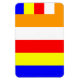 Die buddhistische Fahne ist eine Fahne, die im späten 19. Jahrhundert entworfen wurde, um den Buddhismus zu symbolisieren und universell zu vertreten. Es wird von Buddhisten auf der ganzen Welt benutzt. Die sechs senkrechten Fahnenbänder repräsentieren die sechs Farben der Aura, die Buddhisten von der Leiche des Buddha herleiten, als er Erleuchtung erlangte: Blau (Nila): Liebenswürdigkeit, Frieden und universelles Mitgefühl Gelb (Pita): Der Mittelweg - Extreme vermeiden, Leere Rot (Lohita): Die Segnungen der Praxis - Leistung, Weisheit, Tugend, Glück und Würde (Odata): Die Reinheit von Dharma - die zur Befreiung außerhalb der Zeit oder des Raumes Orange (Manjesta) führt: Die Lehren des Buddha - Weisheit Die sechste vertikale Band, die Fliege, besteht aus einer Kombination von rechteckigen Bändern der fünf anderen Farben und stellt eine Verbindung der anderen fünf Farben im Aura-Spektrum dar. Diese zusammengesetzte Farbe wird als Pabbhassara ("Essenz des Lichts") bezeichnet. Globe Trotters ist auf die Idiosynkratische Bildsprache aus der ganzen Welt spezialisiert. Hier finden Sie einzigartige Grußkarten, Postkarten, Poster, Mousepads und mehr.