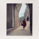 Ein buddhistischer Mönch, der durch die Arkaden des Tempels Wat Chalwathanaram geht, der sich in der antiken Stadt Ayutthaya, Thailand, befindet.