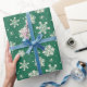 Elf der Film | Karo aus diesem festlichen Weihnachtsbild mit Schneeflocken und dem Elf-Logo auf grünem Hintergrund!