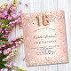 Für eine elegante 18. Geburtstagsfeier. Eine Rose mit goldenem Farbverlauf. Dekoriert mit Rose Gold Imitate Glitzer Staub. Personalisieren und fügen Sie einen Namen und Party-Details hinzu. Der Name wird mit einem handgeschriebenen Stilskript geschrieben. Nummer 18 wird mit einem Schriftart im Ballonstil geschrieben.