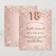 Pour une élégante fête du 18ème anniversaire. Un arrière - plan rose à gradient or. Décoré avec de la poussière de parties scintillant en faux or rose. Personnalisez et ajoutez un nom et des détails du parti. Le nom est écrit avec un script de style écrit à la main. Le numéro 18 est écrit avec une police de style ballon.