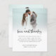 Budget 2 Foto kühne Skript Hochzeit Liebe Danke. Eine preisgünstige SMALLER 4.5" x 5.6" Alternative. Erhältlich in einem SEMI GLOSS 110lb CARD STOCK oder einem SATIN FINISH 80lb THINNER PAPIERSTOCK. Liebe und Dank ist in einem kühlen Set handschriftlich Stil. Personalisieren Sie einfach die Erholung des Textes auf Ihre eigenen Details und ersetzen Sie die Fotos auf der Vorder- und Rückseite mit Ihren eigenen. Fügen Sie Ihren QR-Code zu Ihrer Hochzeitsgalerie online auf der Rückseite, indem Sie den QR-Code auf dem Beispiel ersetzen. Sie können QR-Codes kostenlos online erstellen, suchen Sie 'QR Code Generator'.