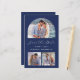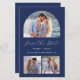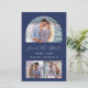 Diese schlichte, minimalistische Save the Date Karte verfügt über ein bogenförmiges horizontales Foto oben und zwei quadratische Fotos unten. Dazwischen erscheinen die Worte "Save the Date" in elegantem, weißem Schriftsatz, gefolgt von den Namen des Paares, dem Hochzeitstag und der Stadt in Sans Serif Schriftart auf marinebasischem Hintergrund. Fügen Sie eine detailliertere Nachricht mit zusätzlichen Informationen auf der Rückseite, zusammen mit einem QR-Code, um Ihren Gästen zu helfen, besuchen Sie Ihre Hochzeitswebsite.