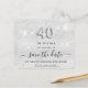 Eine elegante Save the Date-Karte für ein 40. Party. Ein modernes Imitat silber metallisch aussehender Hintergrund mit Imitaten Glitzer Staub. Personalisieren und fügen Sie Datum und Name/Alter hinzu. Graue Buchstaben. Der Text: Save the Date ist mit einem großen angesagten, handgeschriebenen Stilskript geschrieben. Nummer 40 mit einem Schriftart im Ballonstil.