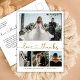 Budget Elegant Heart Schriftart Script Wedding 4 Foto Collage Erschwinglich Dank Ihrer Karte in Gold und Weiß. Stilvolle, minimalistische Hochzeitskartenvorlage mit vier (4) Gitter-Foto-Collage auf der Vorderseite und einem (1) Foto auf der Rückseite. "Liebe und Dank" Text in einer kursiven Hand geschrieben Kalligrafie niedliche Herz-Schriftart-Skript mit Swash-Schwanz. Personalisieren Sie mit Ihrem Namen und danke Ihnen Nachricht. Wenn Sie Hilfe oder Matching Artikel benötigen, wenden Sie sich bitte an Designer!