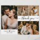 Budget, Eleganter, Minimalistischer Handbrief Hochzeit 4 Foto Collage personalisiert erschwingliche Low Budget Flyer. Stilvolle Hochzeit danke Ihnen Papier Vorlage mit vier (4) Foto auf der Vorderseite und ein Foto auf der Rückseite. Mit dem Text "Danke" in einer Wirblen Hand geschrieben Typografie Skript-Schriftart mit Swash in schwarz auf weißem Hintergrund. Auf der Rückseite ein horizontales Foto und Ihr Dankeschön Meldungsvorlage. ***BEACHTE! *** HAUSHALTSPAPIER/FLYER IST PAPIERTHIN. KEINE ENVELOPES SIND ENTHALTEN.*** AKTUALISIEREN SIE DAS PAPIER FÜR EIN THICKER PAPIER. *** Traditioneller Kardstock mit Umschlägen: https://www.zazzle.com/elegant_typography_script_wedding_4_photo_collage_thank_you_card-256676573582336140 Postcard: https://www.zazzle.com/wedding_love_and_thanks_photo_collage_thank_you_postcard-256792383252352079 Personalisieren Sie den individuelle Name und bedanken Sie sich bei Ihrer Nachricht. Wenn Sie lieber Ihre Notiz handschreiben, löschen Sie einfach den Beispieltext, um mehr Platz zu machen. Wenn Sie Hilfe oder Matching Artikel benötigen, wenden Sie sich bitte an Designer!