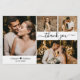 Budget, Eleganter, Minimalistischer Handbrief Hochzeit 4 Foto Collage personalisiert erschwingliche Low Budget Flyer. Stilvolle Hochzeit danke Ihnen Papier Vorlage mit vier (4) Foto auf der Vorderseite und ein Foto auf der Rückseite. Mit dem Text "Danke" in einer Wirblen Hand geschrieben Typografie Skript-Schriftart mit Swash in schwarz auf weißem Hintergrund. Auf der Rückseite ein horizontales Foto und Ihr Dankeschön Meldungsvorlage. ***BEACHTE! *** HAUSHALTSPAPIER/FLYER IST PAPIERTHIN. DAS PAPIER WIRD NICHT INBEGRIFFEN.*** FÜR EIN BILDERPAPIER AKTUALISIERT. *** Traditioneller Kfz mit Umschlägen: https://www.zazzle.com/elegant_typography_script_wedding_4_photo_collage_thank_you_card-256676573582336140 Postkarte: https://www.zazzle.com/wedding_love_and_thanks_photo_collage_thank_you_postcard-256792383252352079 Personalisieren Sie den individuelle Name und danken Sie Ihnen Nachricht. Wenn Sie lieber Ihre Notiz handschreiben, löschen Sie einfach den Beispieltext, um mehr Platz zu machen. Wenn Sie Hilfe oder Matching Artikel benötigen, wenden Sie sich bitte an Designer!
