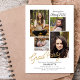 Die Einladung zur Graduierungsparty beinhaltet eine einfache 4-Foto-Collage mit Goldskripttext. Personalisieren Sie Ihre Lieblings-Senior-Fotos und Ihre Party Einladung Details.