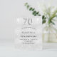 Eine moderne, stilvolle und glamouröse Einladung zu einer 70. Geburtstagsfeier. Ein silbernes Imitat mit Glitzer-Staub. Personalisieren Sie Ihren Namen und Ihre Party-Daten und fügen Sie diese hinzu. Nummer 70 wird mit einem Schriftart im Ballonstil geschrieben, Skript.