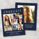 Elegante, preisgünstige, dunkelblaue Abschluss-Ankündigung mit "GRADUATE" über die Spitze in großer weißer Typografie, einer 7-Foto-Collage und ihrem Namen, Klassenjahr und Schule in moderner weißer Typografie. Fügen Sie auf der Rückseite ein zusätzliches Foto und eine benutzerdefinierte Meldung hinzu.