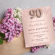 Eine moderne, stilvolle und glamouröse Einladung zu einer 90. Geburtstagsfeier. Ein Imitat Rose gold metallische Hintergrund mit einem eleganten Imitat Rose Gold Glitzer Tropfen, Farbe Tropfen aussehen. Der Name ist mit einer modernen dunklen Rose goldfarbenen Handschrift geschrieben, die als Stilschrift dient. Personalisieren Sie Ihre Party-Daten und fügen Sie sie hinzu. Nummer 90 wird mit einem Schriftart im Ballonstil geschrieben, Skript.