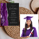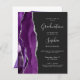 Diese trendige Graduierungsparty-Einladung zeigt ein Aquarellbild einer Agia-Geode in lila Farbtönen, mit Imitaten, die Glitzer-Highlights aus Silber zeigen. Das Wort "Abschluss" und der Vorname des Absolventen erscheinen in elegantem silbergrauem Schriftzeichen auf schwarzem Hintergrund, zusammen mit den Einzelheiten des Party in Serifen und kursiven Schriftart. Ersetzen Sie das Beispielbild auf der Rückseite einfach durch ein vertikales Foto des Absolventen.