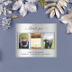 Fügen Sie 3 Ihrer Fotos, vertikale Größe, ein Datum, Name, und das Dankeschön beachten. Ein silber aussehender Hintergrund mit schwarzem Text und Rahmen. Der Text: Vielen Dank auf der Vorderseite und Ihr Name auf der Rückseite sind mit einem stilvollen handgeschriebenen Skript mit Swashes geschrieben.