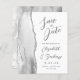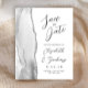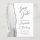 Der links Rand dieser eleganten modernen Hochzeit speichern Sie die Dattelkarte mit einem grauen Aquarellrahmen in Aquarellfarbe, der mit Imitaten silbernen Glitzer bestickt ist. Der individuell anpassbare Text kombiniert handgeschriebene Holzkohle, Kupferplatte und kursiv Schriftart auf weißem Hintergrund. Auf der Rückseite ist ein passendes grau- und silberfarbenes Design erkennbar.