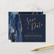Diese elegante Save the Date-Karte verfügt über eine marineblau-blaue Aquarellgrenze mit vergoldetem Imitat-Glitzer bestickt. Der anpassbare Text kombiniert goldfarbene Handschriftenschrift, Copperplate und kursiv Schriftart auf marinebasischem Hintergrund. Auf der Rückseite ist ein passendes marineblau-goldfarbenes Design zu sehen.