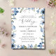 Diese elegante All-in-One-Einladung aus unserer Blue Pressed Floral-Kollektion besticht durch niedliche Blume in staubblauen Farbtönen mit zarter Vegetation, gepaart mit einem hochmodernen Script-Schriftart. Ideal für Frühling, Sommer und Herbst Party!