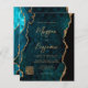 Diese elegante Hochzeitseinladung zeigt ein Hintergrundbild des aquamarinen blauen Aquarelles mit vergoldetem Imitat Glitzer. Der anpassbare Text kombiniert goldfarbene moderne Handschrift, Copperplate und kursiven Schriftart. Sie benötigen weitere Informationen? Einfach den QR Code anpassen, um Gäste auf Ihre Hochzeitswebsite zu leiten. Die Rückseite ist mit einem aquamarinen und goldfarbenen Agatdesign abgestimmt.