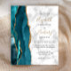 Der links Rand dieser eleganten, modernen Hochzeitseinladung besticht durch eine aquamarine, blaue Aquarellgrenze mit vergoldetem Imitat-Glitzer. Der anpassbare Text kombiniert eine goldene Handschrift mit schwarzer Kupferplatte und kursiven Schriftart auf grauem und weißem Marmorhintergrund. Auf der Rückseite ist ein aquamarines und goldenes Design zu sehen.