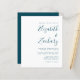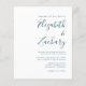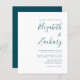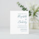 Diese einfache, moderne Hochzeitseinladung mit aquamarinem blauen Text auf weißem Hintergrund. Fügen Sie die Namen der Braut und Bräutigam in stilvoller Handschrift Kalligraphie und die Details in sans serif Schriftart. Die Rückseite bietet Platz für Hochzeitsdetails auf einem soliden aquamarinen Hintergrund, zusammen mit einem QR-Code können Gäste scannen, um Ihre Website und UAWG zu besuchen. HINWEIS: Umschläge sind nicht automatisch in diese Einladungen mit dem Budget eingeschlossen. Bitte denken Sie daran, die Option "weiße Umschläge" zu wählen!