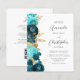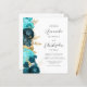 Die links Seite dieses eleganten, modernen Hochzeitseinladens besticht durch eine aquamarine blau-aqua-blumengeschmückte Grenze mit goldenen Imitate-Foliage. Der benutzerdefinierbare Text kombiniert das kohlegraue Skript und setzt serifenlose Schriftart auf weißem Hintergrund. Die Rückseite bietet Platz für Hochzeitsdetails auf einem soliden, weißen Hintergrund, zusammen mit einem QR-Code können Gäste scannen, um Ihre Website und UAWG zu besuchen, was die Kosten für den Druck und Versand separater RSVP-Karten rette.