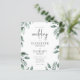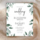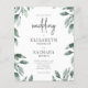 Das Aquarell umgibt den Text in dieser modernen botanischen Hochzeitseinladung. Das Wort "Hochzeit" erscheint in edgy Holzkohle grau Skript. Personalisieren Sie die Einladung mit den Namen der Braut und Bräutigam in einer Kombination aus Serif und Sans Serif Typografie und die Hochzeitsdetails in Kursivschrift.