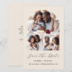 Diese schlichte, minimalistische Save the Date Karte verfügt über einen Kollagenbogen aus Foto mit einem horizontalen Foto oben und zwei quadratischen Fotos unten. Die Worte "Save the Date" erscheinen in eleganter schwarzer Schrift, gefolgt von den Namen des Paares, dem Hochzeitstag und der Stadt in serifenem Schriftart auf beigem Hintergrund. Fügen Sie eine detailliertere Nachricht mit zusätzlichen Informationen auf der Rückseite hinzu.