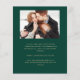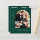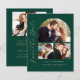 Diese schlichte, minimalistische Save the Date Karte verfügt über einen Kollagenbogen aus Foto mit einem horizontalen Foto oben und zwei quadratischen Fotos unten. Die Wörter "Save the Date" laufen in elegantem goldfarbenem Schriftsatz vertikal über den verlassen Rand. Die Namen des Ehepaares, das Hochzeitstag und die Stadt erscheinen unter der Collage des Fotos in serifenlosen Schriftart auf einem smaragdgrünen Hintergrund. Fügen Sie ein viertes, horizontales Foto und eine ausführlichere Nachricht mit weiteren Informationen auf der Rückseite hinzu.