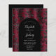 Dieses elegante Design besticht durch ein stimmungsvolles Hintergrundbild Vintager Imitate mit samtenen Blumenmotiven in Bordeaux und Schwarz. Personalisieren Sie es mit den Namen der Braut und des Bräutigams in silbergrauer Kalligraphie-Schrift und dem verbleibenden Text in einer Kombination aus Sans Serif, Copperplate und Kursivschrift auf einer schwarzen Bogenform. Die Rückseite bietet Platz für Hochzeitsdetails auf einem soliden schwarzen Hintergrund, zusammen mit einem QR-Code können Gäste scannen, um Ihre Website und UAWG.