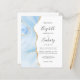 Die links Kulisse dieser eleganten, modernen Hochzeitseinladung besticht durch einen pastellblauen Aquarellstreifen in Aquarellfarbe mit vergoldetem Imitat-Glitzer. Der anpassbare Text kombiniert Handschrift, Copperplate und kursiv Schriftart in Holzkohlegrau auf weißem Hintergrund. Die Rückseite bietet Platz für Hochzeitsdetails auf einem soliden, weißen Hintergrund, zusammen mit einem QR-Code können Gäste scannen, um Ihre Website und UAWG.