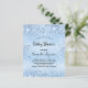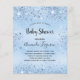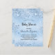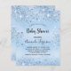 Für eine Babydusche, Feiern eines kleinen Jungen. Ein hellblaues Imitat mit metallisch anmutendem Hintergrund. Dekoriert mit Imitaten Glitzer Staub. Vorlagen für den Namen und das Party der Mutter. Der Name und der Text: Baby Shower wird mit einem handgeschriebenen Stift geschrieben