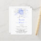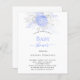 Für eine Babydusche, die einen kleinen Jungen feiert. Ein stilvoller weißer Hintergrund. Die Einrichtung ist mit hellblauen und weißen Blumen, Rose und Imitaten aus Silberblättern geschmückt. Personalisieren und fügen Sie einen Namen und Party-Details hinzu.