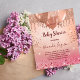 Für eine Babydusche, Feiern eines kleinen Mädchens. Eine Rose Gold und rosa Farbverlauf Hintergrund. Dekoriert mit Rose Gold, rosa Imitat Glitzer Tropfen, Farbe Tropfen Look und Ballons. Personalisieren und fügen Sie den Namen der Mutter zu sein und Party-Details. Der Name und der Text: Baby Shower wird mit einem handgeschriebenen Stift geschrieben