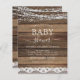 Budget Baby Shower - Rustikales Bauernhaus String Lights Lace Einladungen auf Holz Hintergrund - beinhaltet schöne und elegante Schrift Typografie mit modernem Landhaus Sparkle für die besondere Mutter zu sein Feiern.