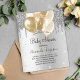 Für eine Babydusche, geschlechtsneutral. Ein Imitat silberner Hintergrund. Dekoriert mit Imitaten silberne Glitzer Tropfen, Farbe Tropfen Look und Goldballons. Personalisieren und fügen Sie den Namen der Mutter zu sein und Party-Details. Der Name und der Text: Baby Shower wird mit einem handgeschriebenen Stift geschrieben