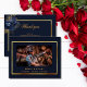 Eine schlichte und elegante Dankkarte mit Foto. Ein dunkelblauer Hintergrund, ein goldenes Imitat und blaue Blumen. Personalisieren Sie und fügen Sie Ihren Dankeschön Note.
