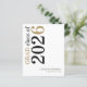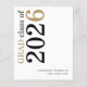 Eine günstige BUDGET-Alternative für eine kleinere Größe von 4,5 x 5,6 Zoll, die ein Gewicht von 110 lbs hat, die ähnlich dick ist wie eine Postkarte (sie ist jedoch nicht als Postkarte geeignet). BITTE BEACHTEN SIE, DASS ES EINE pro Blatt gibt. Budget Black Gold Text 2025 White Abschluss Ankündigung. Ein modernes, stylisches typografisches Design, um die Neuigkeiten Ihres Absolventen anzukündigen. Stilvolle große Typografie rotiert und an der links Seite oben in Schwarz und Gold. Personalisieren Sie die Erholung des Textes einfach, indem Sie Ihre Nachricht auf der Rückseite einschließen