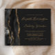 Die links Seite dieses eleganten, modernen Hochzeitseinladens besticht durch einen schwarzen Aquarellrahmen, der mit vergoldetem Imitat bestickt ist. Der anpassbare Text kombiniert goldfarbene Handschrift, Copperplate und kursiv Schriftart auf einem schwarzen Hintergrund. Der Rücken ist schwarz und massiv.