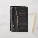 Die links Seite dieses eleganten, modernen Hochzeitseinladens besticht durch einen schwarzen Aquarellrahmen, der mit Imitaten Rose Gold Glitzer bestickt ist. Der individuell anpassbare Text kombiniert Handschrift, Copperplate und kursiv auf dunkelkohlegrauem Hintergrund. Das agate Design wird auf der Rückseite der Karte wiederholt.