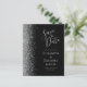 Die links Hand dieses eleganten, modernen Hochzeitsgeschehens bewahrt die Dattelkarte mit einem silbernen Imitat Glitzer Rand. Der anpassbare Text kombiniert silbergraue Handschrift, Kupferplatte und kursiv Schriftart auf schwarzem Hintergrund. Die Rückseite ist in Schwarz und Silber gehalten.
