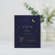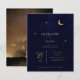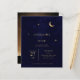 Eine minimalistische, moderne himmlische Hochzeitseinladung zeichnet sich durch ein schlichtes und elegantes Design aus. Es beinhaltet einen Goldfolienmond und Sterne, die sanft glitzern, Set vor einem sauberen Hintergrund mit einem Foto an der Rückseite, das angepasst werden kann. Die Einladung benutzt klassische Serifentypografie, die eine traditionelle und formale Touch mit ihrem gepflegten und klaren Stil hinzufügt. Die Kombination aus modernem Design, glänzenden Golddetails und zeitlosen Schriftart macht die Einladung zu einem unvergesslichen und einladenden Tag.