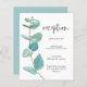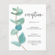 Budget Blue Eukalyptus Hochzeitsempfang Details. Ein Preis SMALLER 4,5" x 5,6" Alternative. Erhältlich in einem SEMI GLOSS 110lb CARD STOCK, welches die Standardoption ist (empfohlen für Einladungen), ODER einem SATIN FINISH 80lb THINNER PAPER STOCK (ideal für Gehäuse). Umschläge sind optional und etwas größer als die Kartengröße. Moderne Eleganz für Ihre Empfang Details mit einem Zweig von Eukalyptus-Blätter auf der links Seite, und Set Typografie in schwarz für die Hauptüberschrift ergänzt die Erholung des Textes, die Sie leicht personalisieren können.