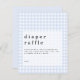 Ein Preis SMALLER 4,5" x 5,6" Alternative. Die SATIN FINISH 80 lb ist ein THINNER PAPIERSTOCK (ideal für Gehäuse wie diese), alternativ in einem SEMI GLOSS 110 lb CARD STOCK (ideal für Einladungen) erhältlich. Umschläge sind optional und etwas größer als die Kartengröße. Blue Gingham Diaper Raffle Gehäuse. Baby Jungen. Der Header ist groß in stilvollen Kleinbuchstaben, die Details unten auf einer Deckschicht überlagert auf dem Gingham-Hintergrund. Personalisieren Sie den Text einfach auf Ihre eigenen Daten.
