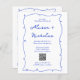Budget Moderne Whimsical Blue Hand Drawn & Handwriting Schriftart Monogram QR Code Wedding Einladung.