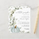 Dieses preisgünstige blaue Kürbis Eukalyptus Herbst Blütendusche lädt zu einer eleganten Babydusche ein. Das Design besticht durch einen wunderschönen, blau gepaart mit Eukalyptus-Pflanzen. Ein eleganter Script-Schriftart ist die perfekte Touch für die Endbearbeitung. Die Karte kehrt zu einem hübschen Eukalyptusmuster zurück. Personalisieren Sie mit allen Details für Ihre Babydusche.