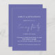 Eine günstige BUDGET-Alternative für eine kleinere Größe von 4,5 x 5,6 Zoll, die ein Gewicht von 110 lbs hat, die ähnlich dick ist wie eine Postkarte (sie ist jedoch nicht als Postkarte geeignet). BITTE BEACHTEN SIE, DASS ES EINE Einladung pro Blatt gibt. Budget Simple Script Blue Wedding Abend Party Einladung.. Ein handgeschriebenes Set für Abend Party und die Erholung des Textes können Sie leicht auf einem Hintergrund von periwinkle blauen violett personalisieren. Die Text- und Hintergrundfarben können durch die Option Weitere anpassen auf beliebig oder beliebig geändert werden.